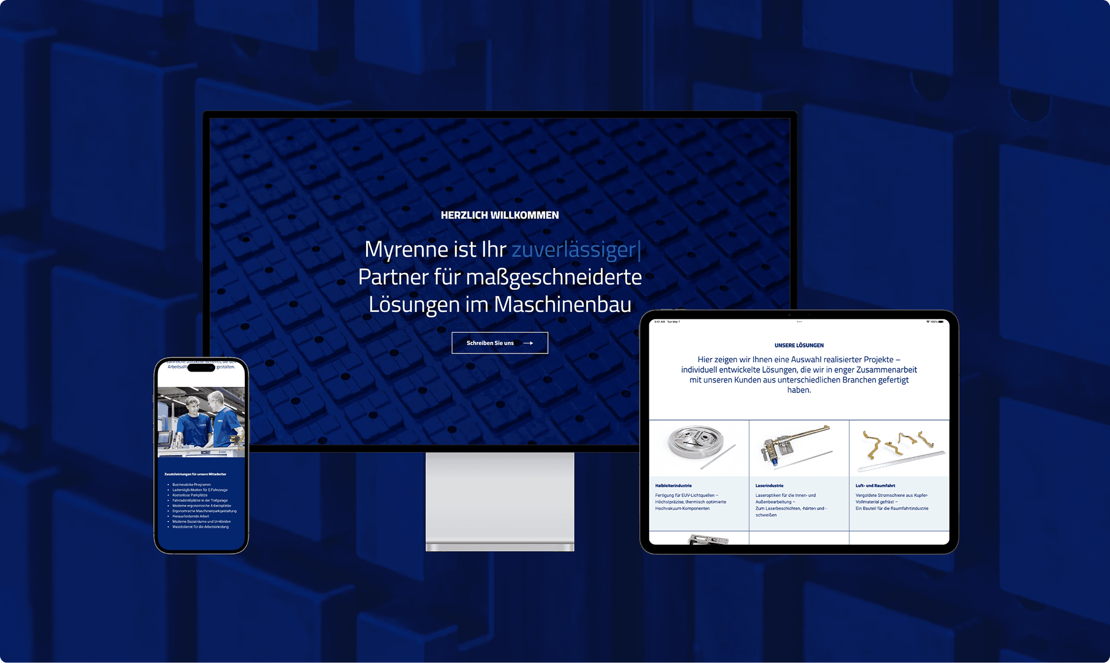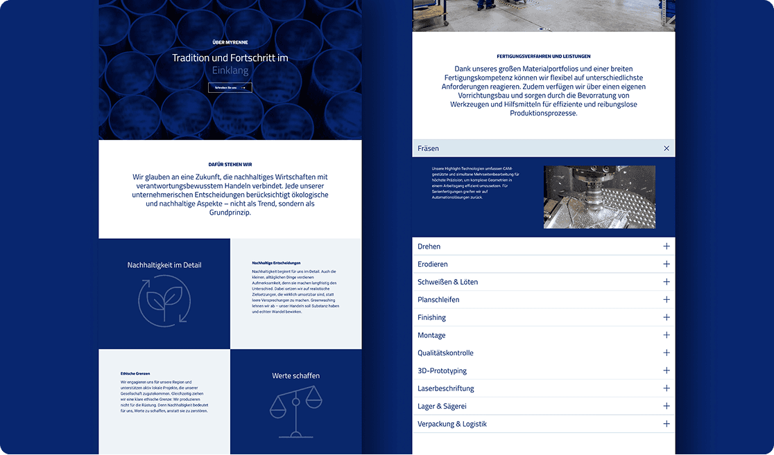 Für Myrenne wurde der Markenauftritt überarbeitet und in eine neue Website überführt. Ziel war es, das Produktportfolio im Maschinenbau klar zu strukturieren und in einer verständlichen, visuell geführten Nutzererfahrung abzubilden. UX / UI Design, visuelles System und 3D Visualisierungen greifen ineinander und schaffen eine konsistente Darstellung komplexer Inhalte.