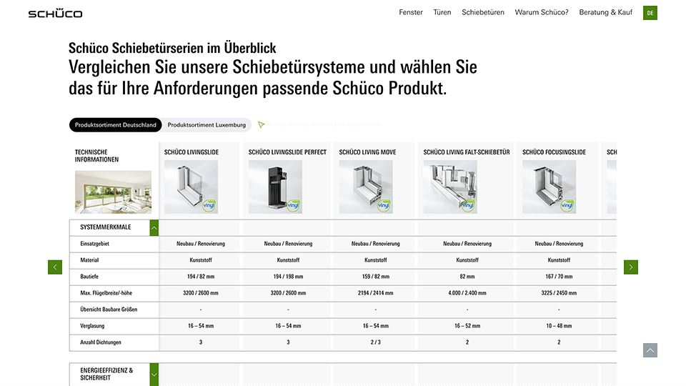 Für Schüco wurde eine digitale Plattform entwickelt, die komplexe Produktsysteme emotional inszeniert. Ziel war es, technische Informationen mit einer intuitiven Nutzererfahrung zu verbinden und die Produktwelt von Schüco auf eine neue, inspirierende Weise zugänglich zu machen. Die Anwendung richtet sich sowohl an Fachpublikum als auch an Endkund:innen und bietet Orientierung im vielfältigen Portfolio.