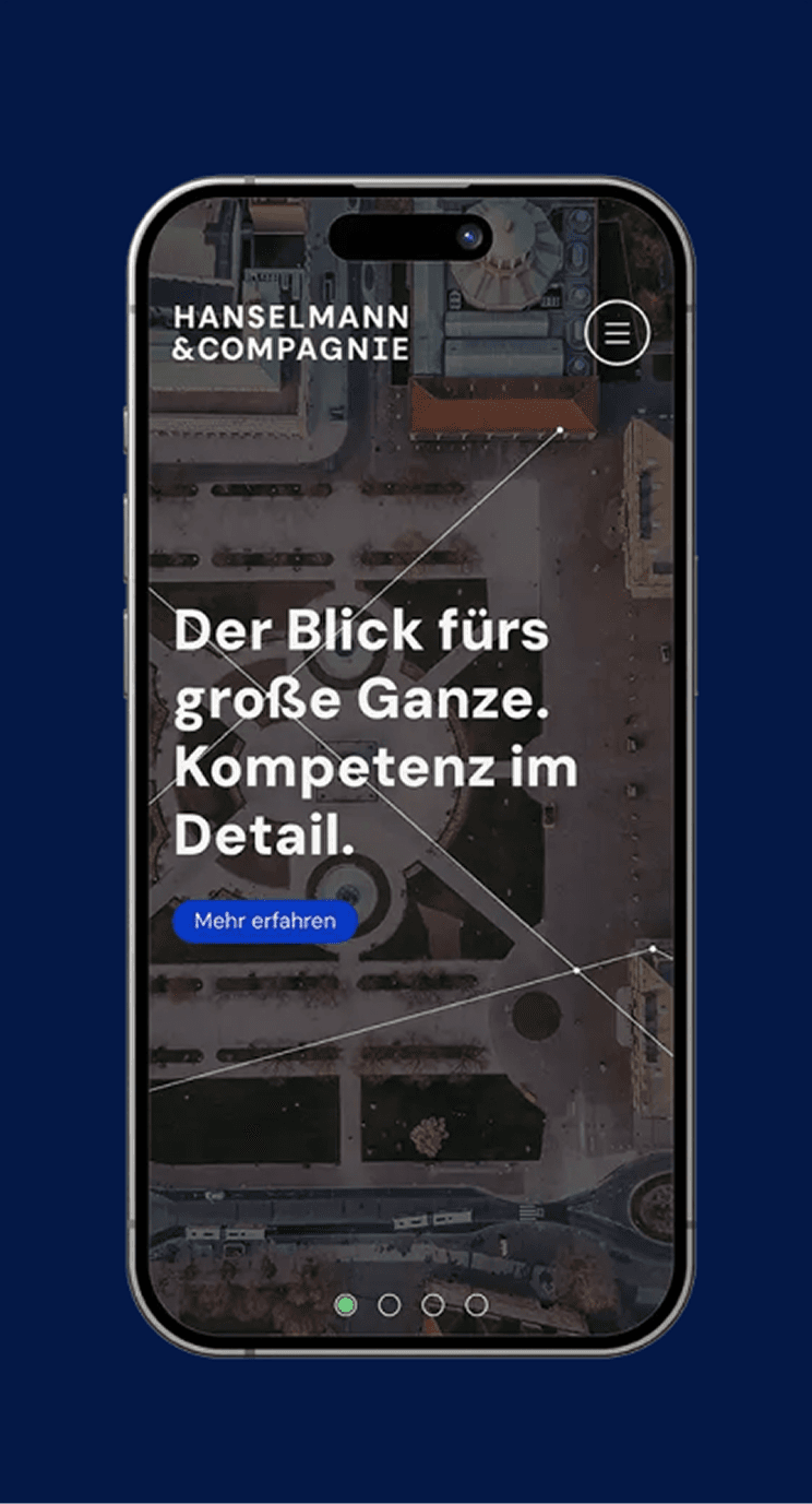 Für Hanselmann & Compagnie wurde eine Corporate Website entwickelt, die komplexe Beratungsleistungen klar strukturiert und zugänglich macht. UX / UI Design, Frontend Entwicklung und Content-Struktur greifen ineinander und schaffen eine Anwendung, die Inhalte verständlich vermittelt und flexibel erweiterbar ist.